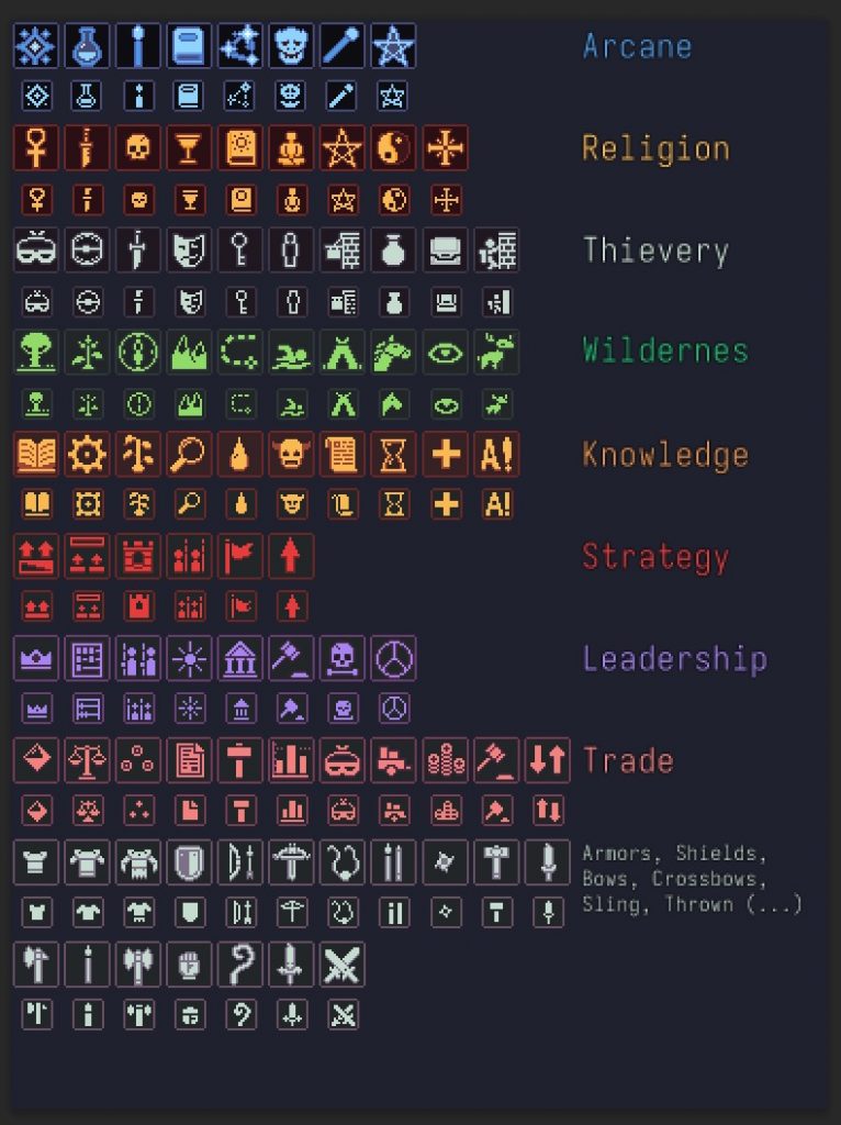 Next we get to icons. Like ADOM Realms of Ancardia will tons of items, some predefined, some randomly generated for each and every game. Krys has started to work on the graphics for the icons:
